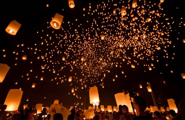 Loy Krathong: Celebrated during the full moon of the 12th lunar month, Thais float candlelit, banana-leaf boats on waterways to honor water spirits and make wishes.